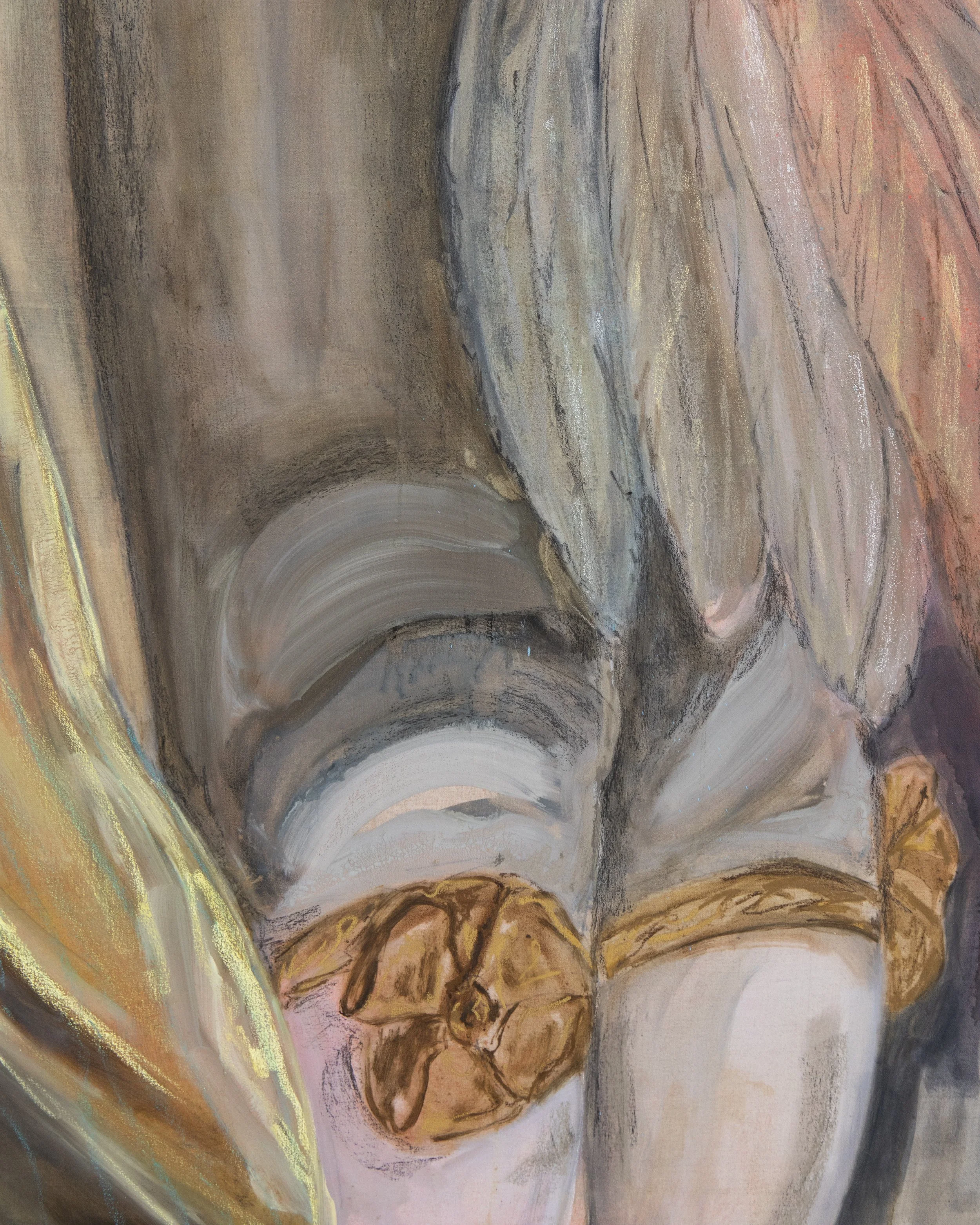 115 x 180cm. Spray paint, oil & pastel on canvas, Left: Detail. Right: Full Work