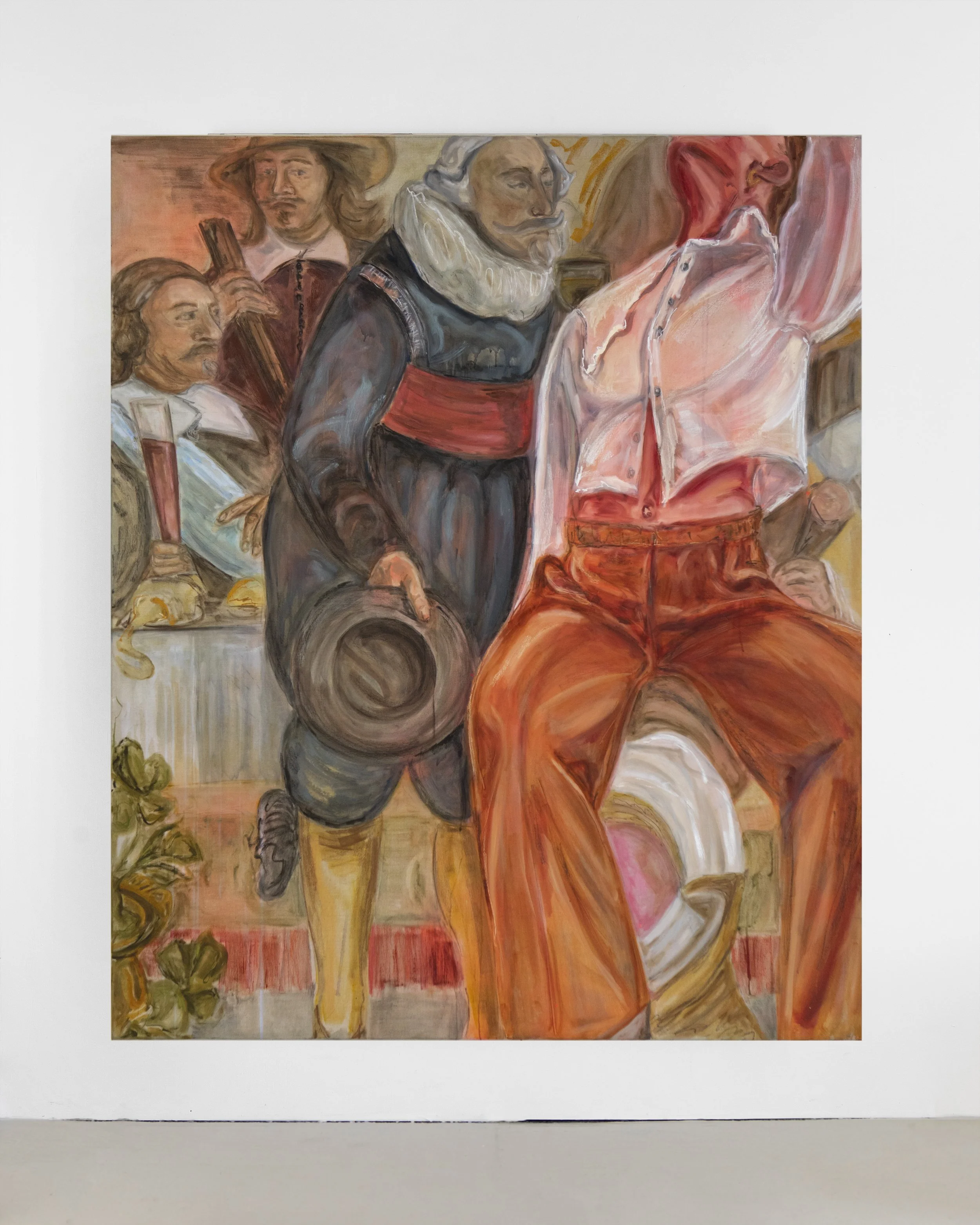 180 x 135cm. Spray paint, oil, oil stick & pastel on linen.